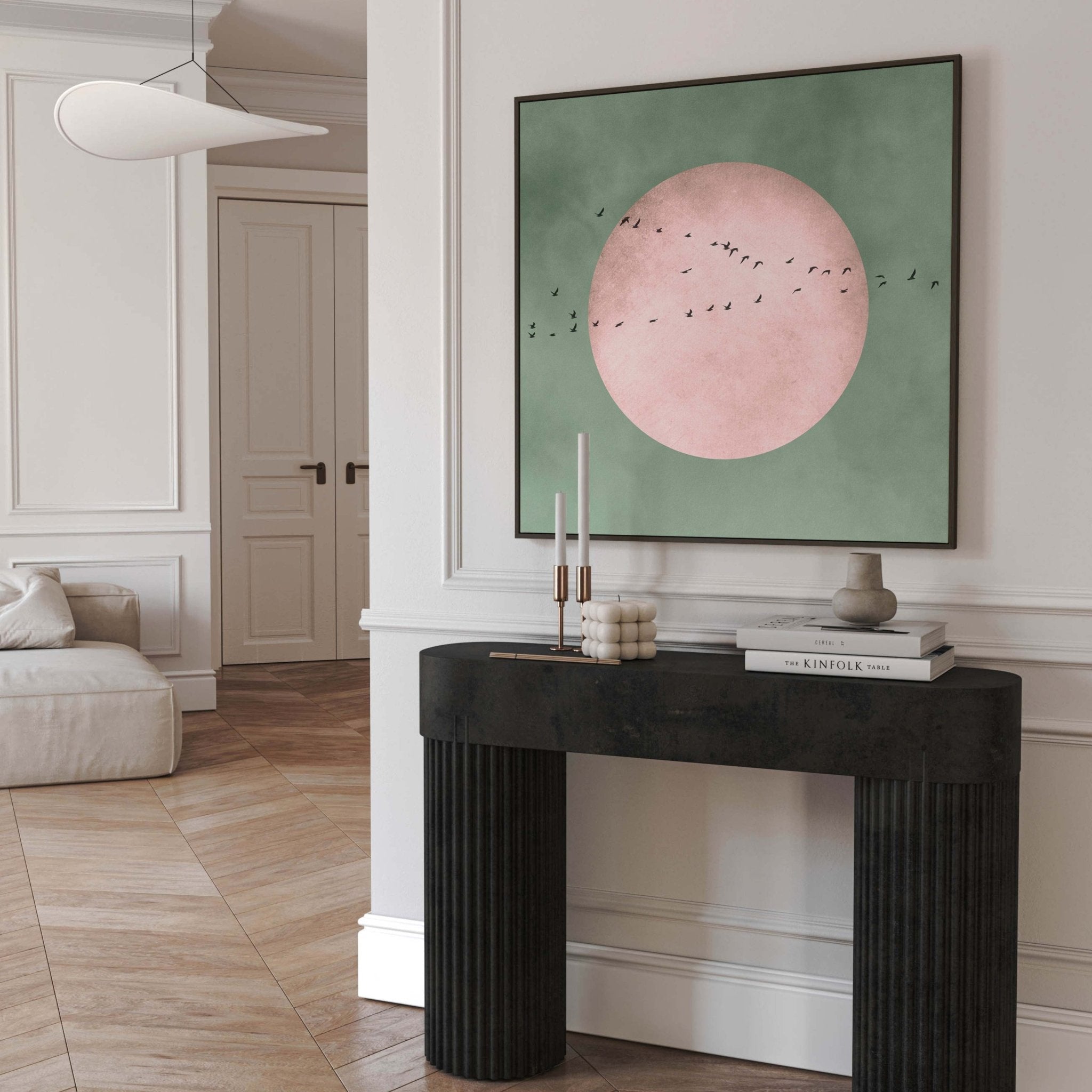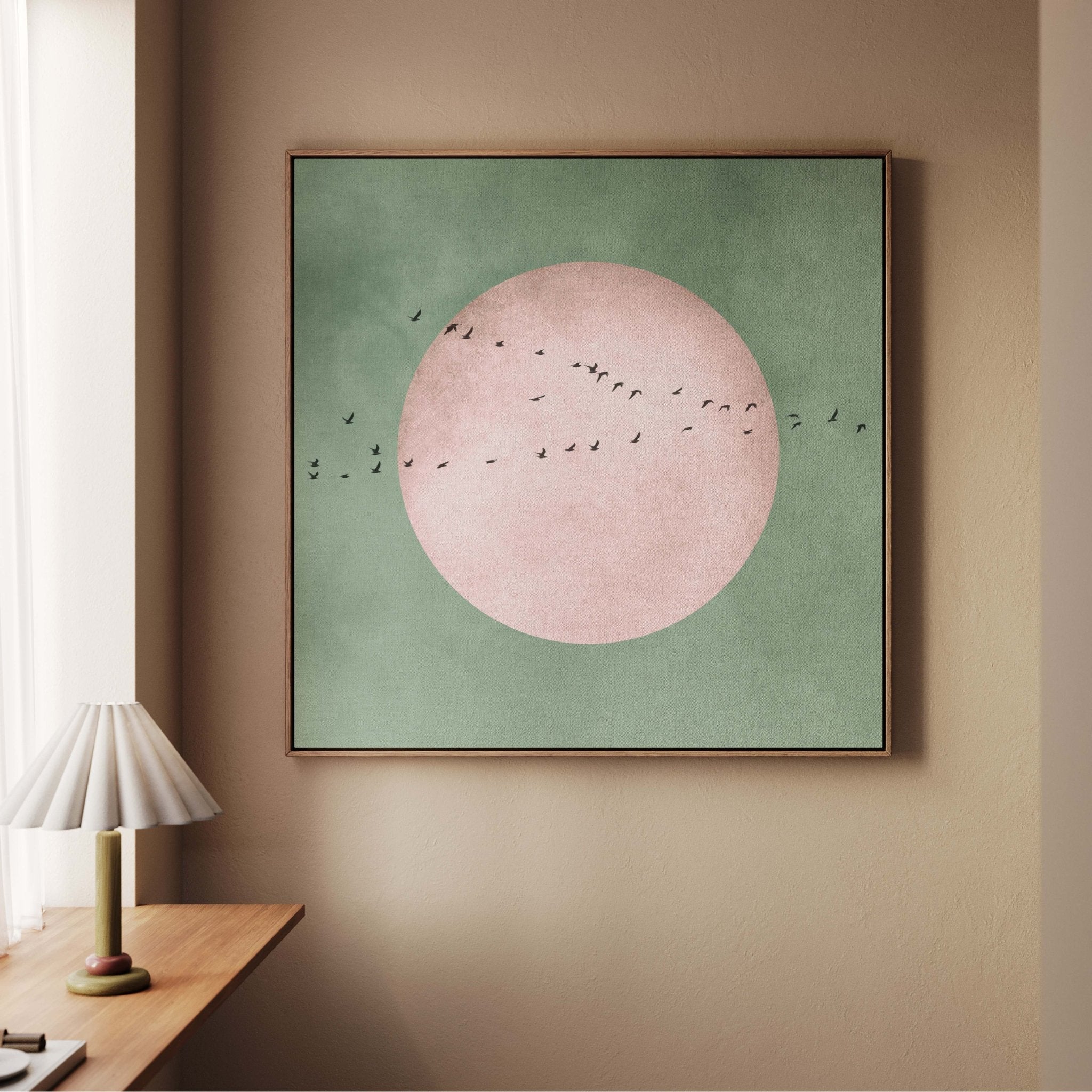 Full Moon Square Framed Canvas - Sage / Blush