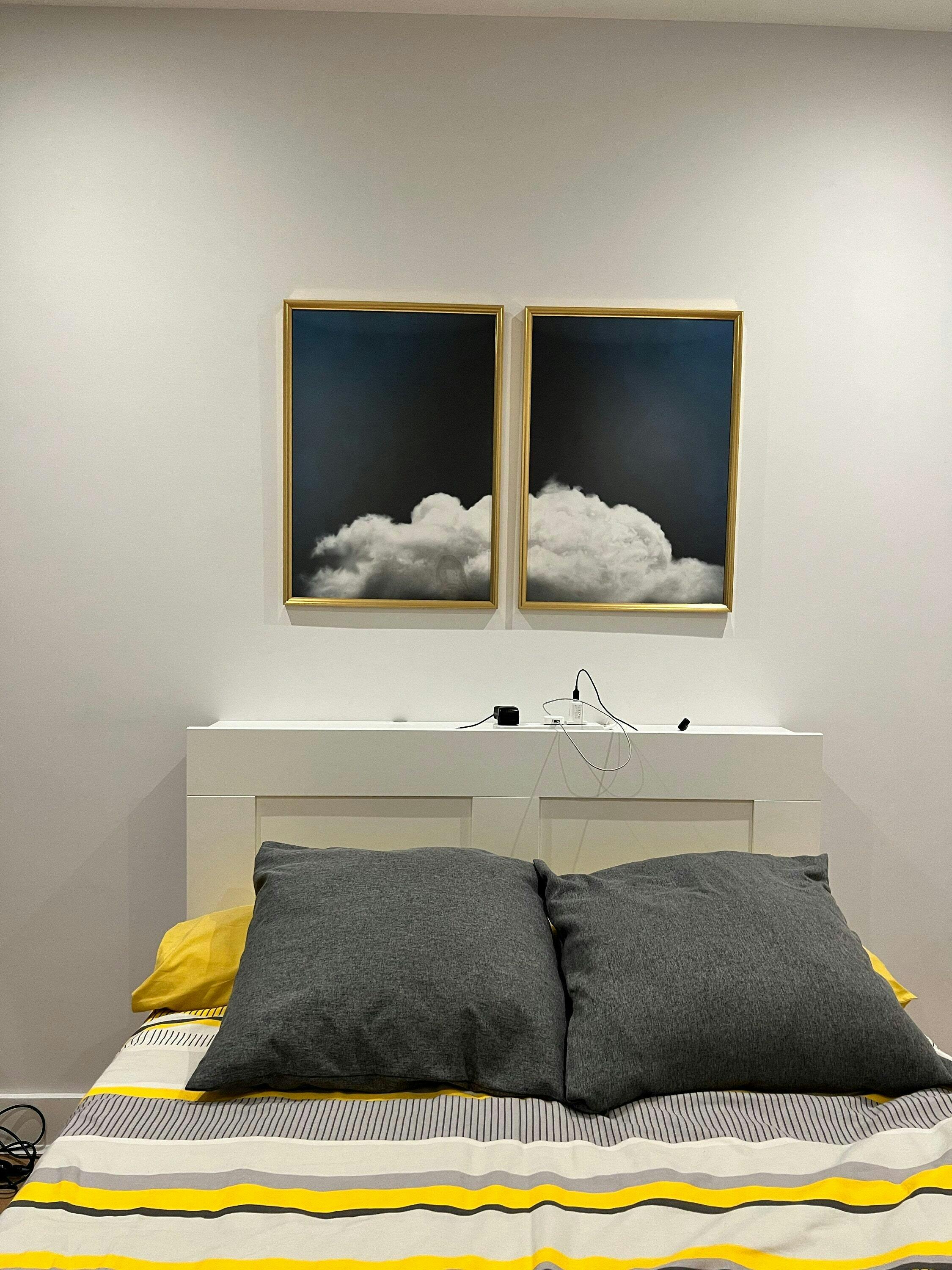 No need to feel blue with this two-piece set! Our sapphire blue cloud print duo will bring pure joy to you and your home. This contemporary wall art set will look perfect in your interior - try hanging them above your bed or in your dining room for maximum impact.