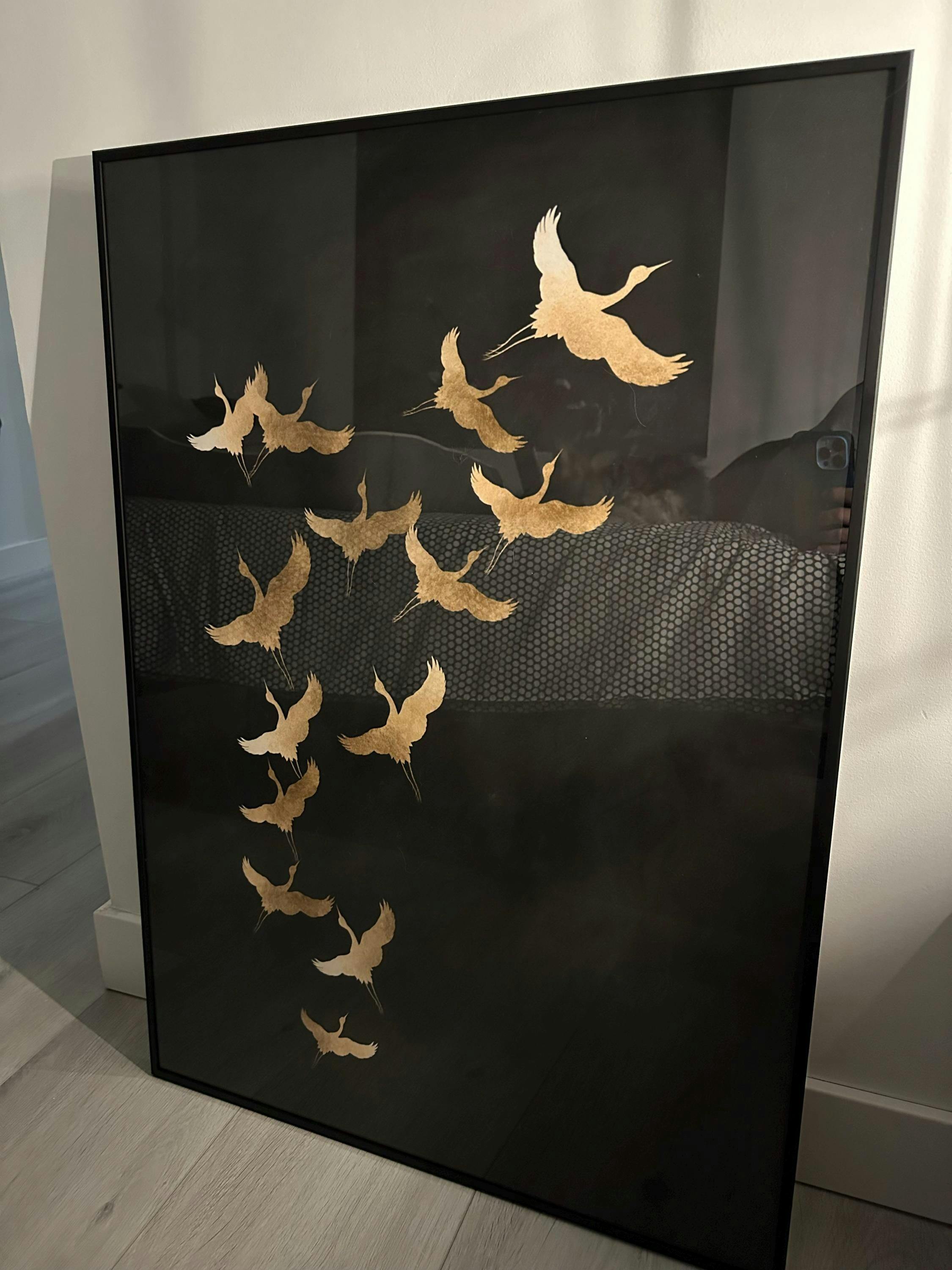 This exquisite black and gold Cranes art print demonstrates exactly why Japandi-style art is so popular in the western world.