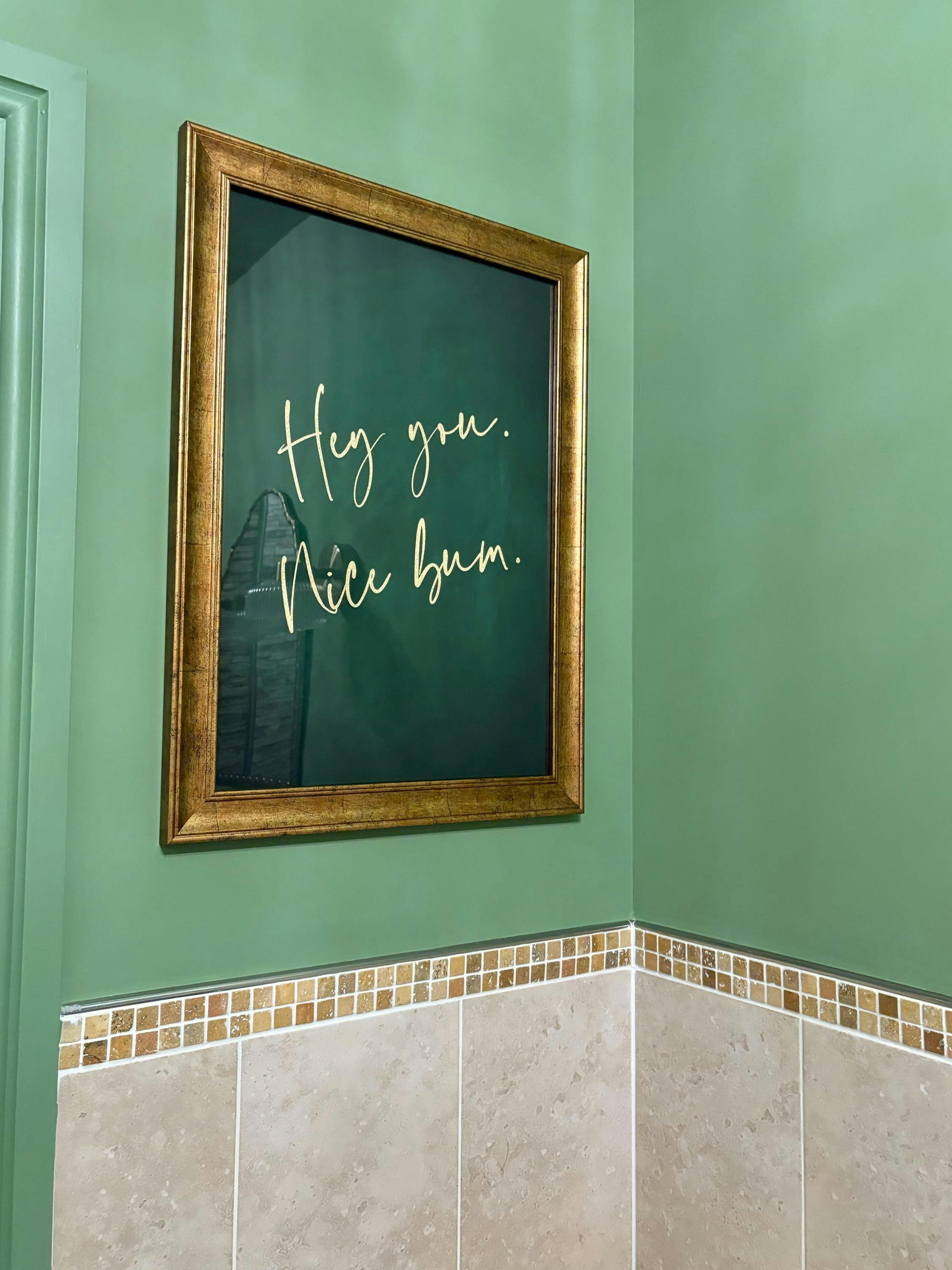 Feeling flirty? This playful print always brings a smile to our faces. This typography wall art features a gold-toned font set against a regal-like emerald green background. This vibrant wall art would look fantastic in any room but we suggest hanging it in your bathroom for a daily dose of self love.