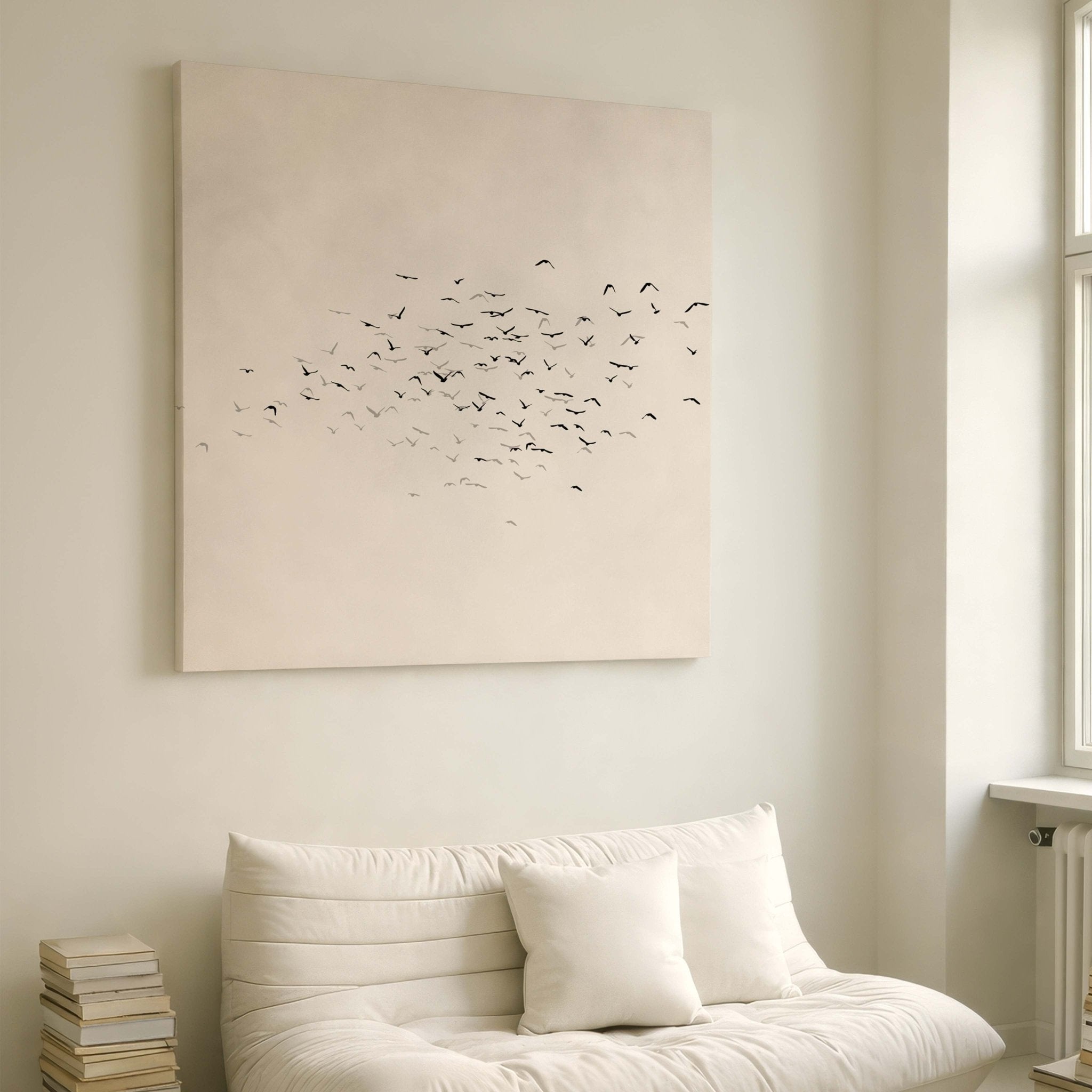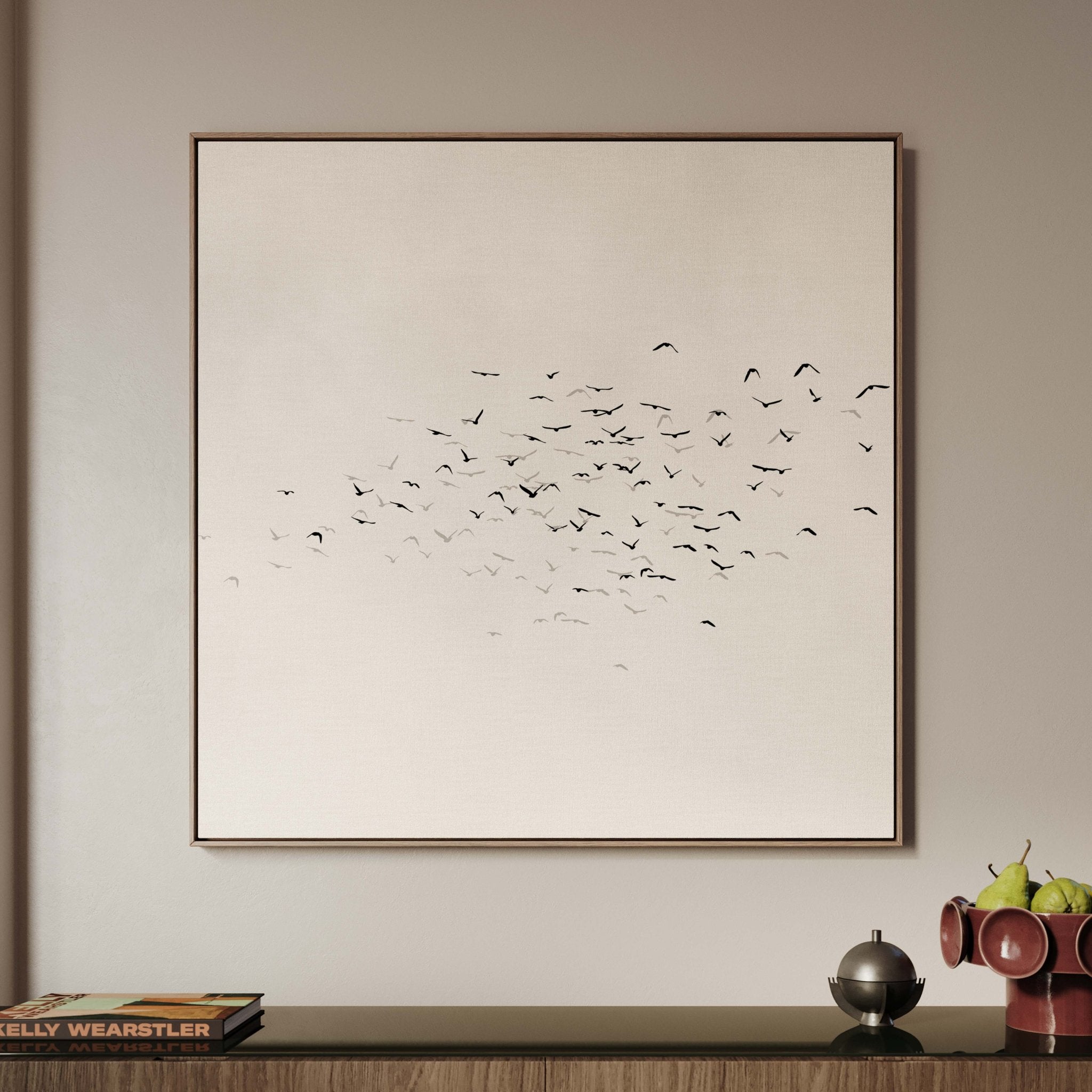 Les Oiseaux Square Framed Canvas - Neutral / Square