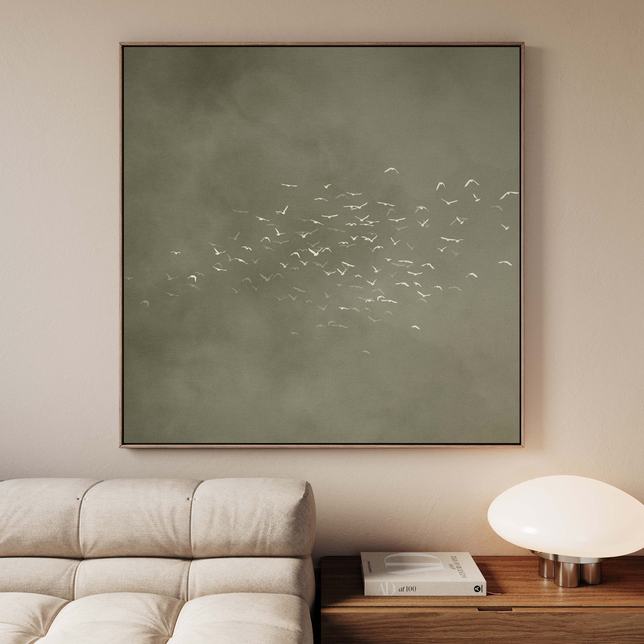 Les Oiseaux Square Framed Canvas - Olive / Square