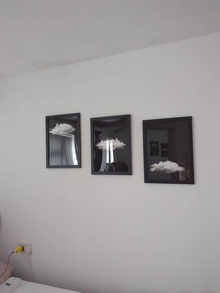 Nuage is a wonderfully unique piece featuring white cloud illustrations set against a black textured background, the perfect wall art for your minimalist or maximalist interior!