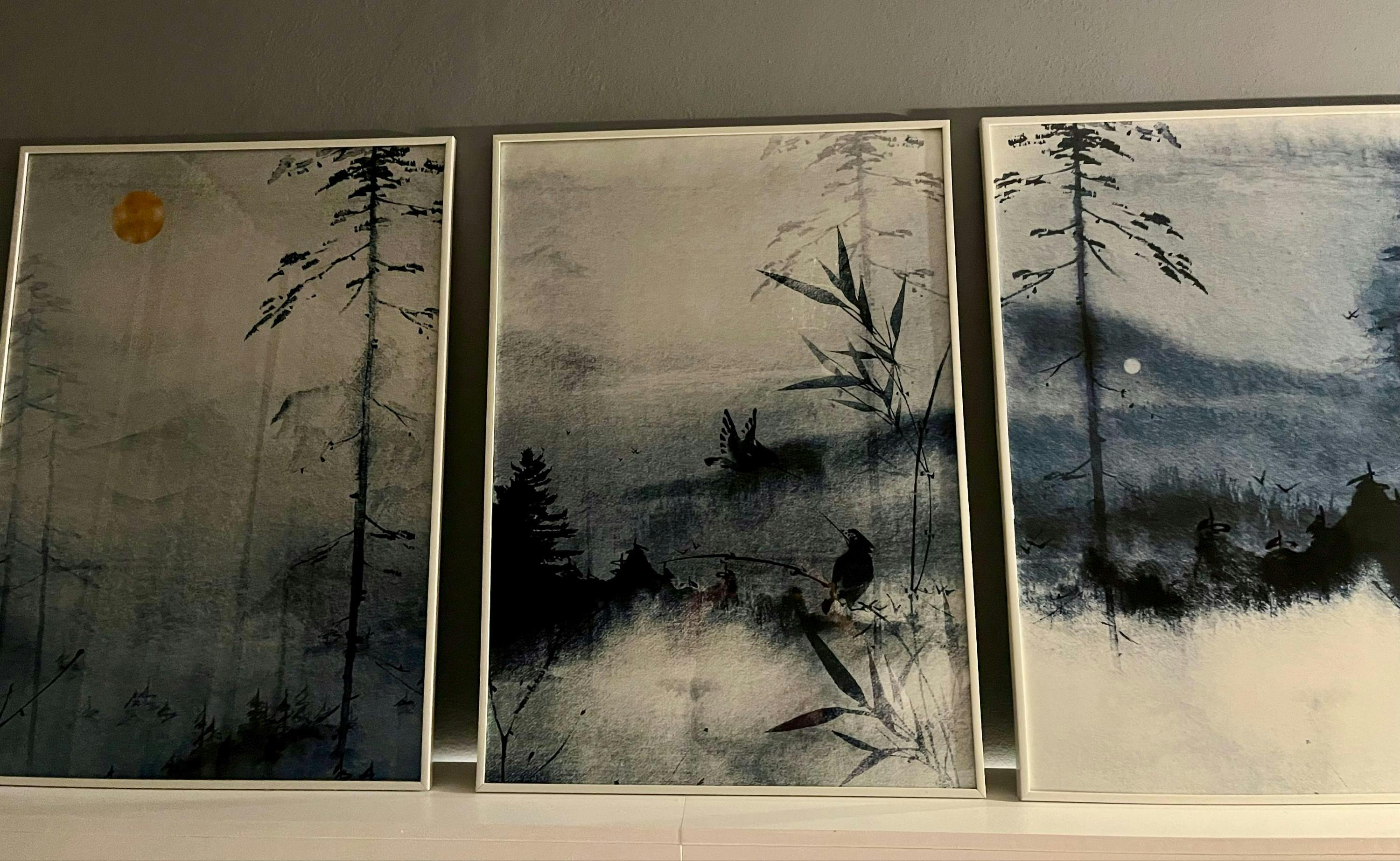 The light between the branches and the canopy creates a soft, warm outline of a beautiful scene. This blue Komorebi Japanese wall art teases a quiet, serene, almost mysterious view that offers up new secrets every time you take a look.